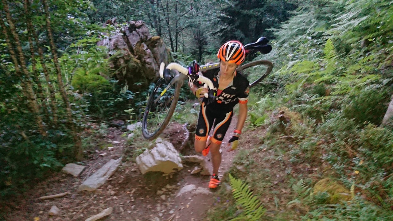 Bottles filled from a spring in the town where the tarmac turned to gravel, we felt confident. When the gravel road ended though the track soon became unrideable – good Three Peaks practise, but slow going!