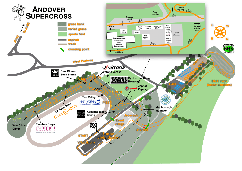 A classic cyclocross blend of road, flat grass, steep banks, tracks, plus a bit of BMX track! The course has been designed to be appropriate for all abilities while still offering a challenge for everyone.