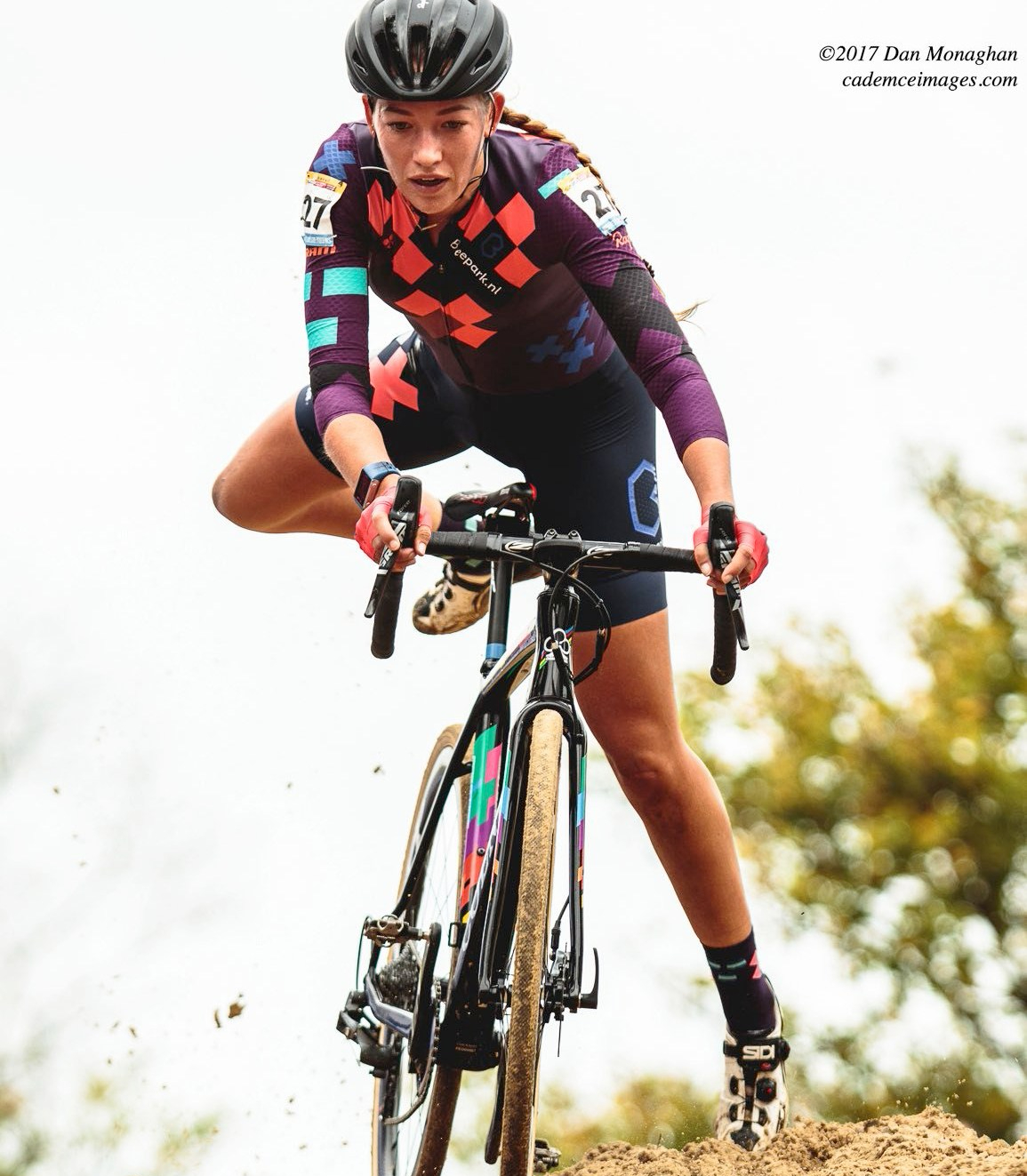 The 2017-18 World Cup course at Bogense was based around a viscously steep bank along the Danish coast. The clip below starts as the riders approach a seemingly un-rideable ‘run-up’. Some riders give it a go, some dismount effectively part way up, some are beaten completely by the bank, but MVDP ‘projects’ himself to the top (see page 70) and conquers it in the end. Keep watching for some off-camber downhill action, and a van der Haar comedy of bunnyhopping.